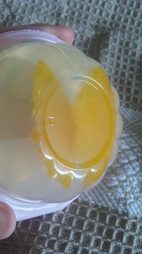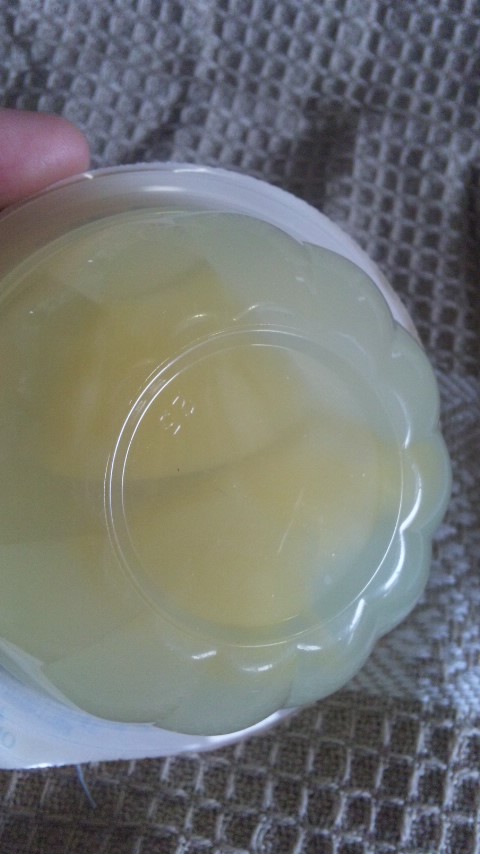 変なたとえですが、容器に入っている状態がブラをしているおっぱいで、お皿に出したのがブラを外して仰向けになった状態のおっぱいって感じ。ゼリーは寄せて上げてしないと食べにくいですねえ。